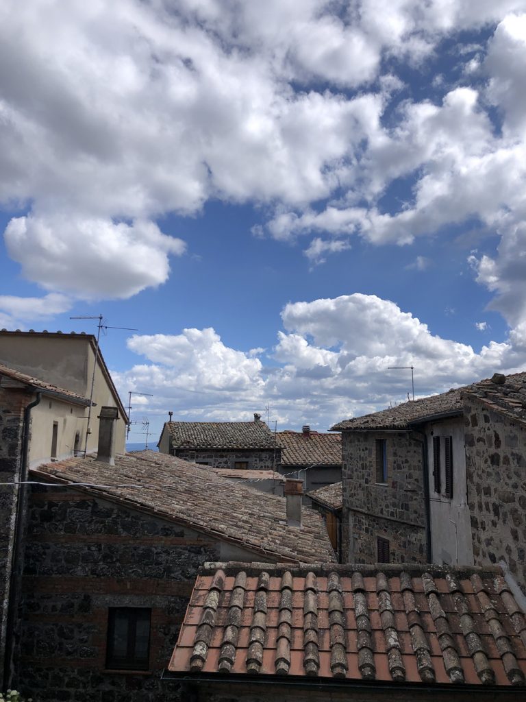 Una volta entrati, ci siamo subito diretti alla nostra dimora per la notte, con una vista sopra i tetti di Radicofani. Posate le bici, e doccia fatta, decidemmo di fare un giro a piedi per il borgo. Per prima cosa siamo andati a vedere la chiesa di San Pietro, un edificio sacro. Il primo ricordo risale al 1224.